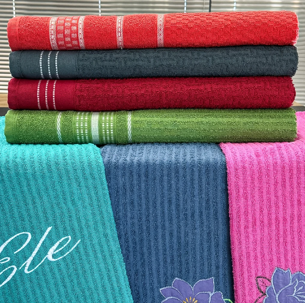 Toalha de banho com bordado, 420g de gramatura e tamanho 0,80 x 1,80 m (exceto efeito decorativo). Disponível nas cores Ouro, Cereja 607, Musgo 309, Pink 09, Jeans 13, Coral 22, Oceano 08 e Chumbo.